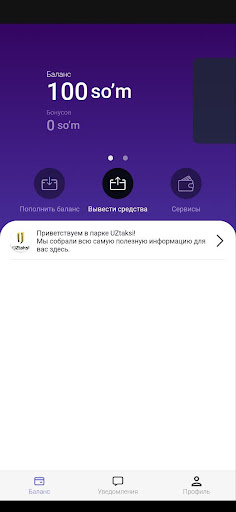 Приложение для вывода средств водителей Яндекс которые работают в таксопарке UZtaksi