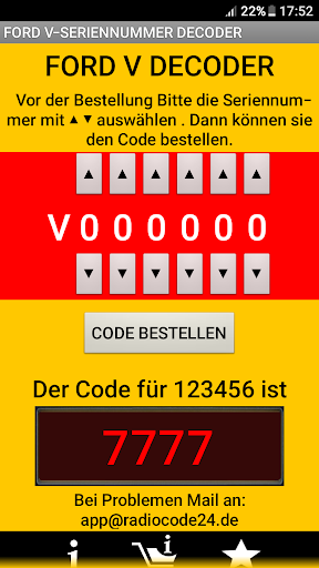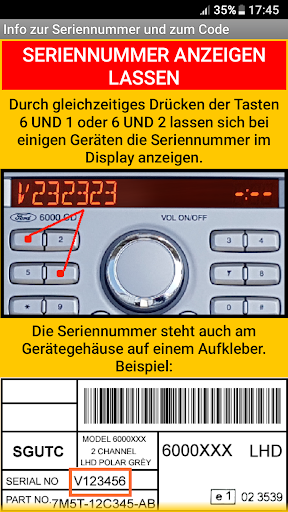 Ford V-Seriennummer Radio Code Decoder für alle Radios mit der Seriennummer wie z.B. V123456 (6 Zahlen)