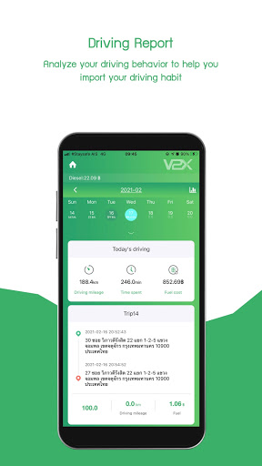 When the vehicle is driving status, the app will receive a message reminder to inform you where it gets started, the distance and time duration. A report on the entire driving behavior will also be generated, giving advice on driving duration, driving speed, intense driving behavior and etc.