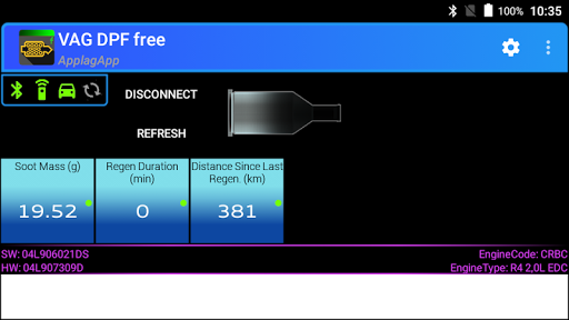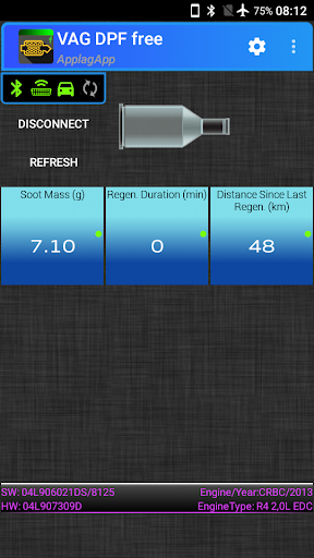 VAG DPF lite is the free version of the application VAG DPF that show you the most important data related to the DPF particulate filter and its regeneration phases using an ELM327 Bluetooth/WIFI adapter. With this free app you can statically view 3 parameters related to the particulate filter status. This app doesn’t use standard OBD2 commands as almost all other apps, it uses directly CAN commands specific of car model and this is the reason why it doesn’t work with every car; due to the use of CAN commands, the app needs al least a decent ELM327 adapter (see note below); some users reports correct app working with a 10-15 euro adapter.