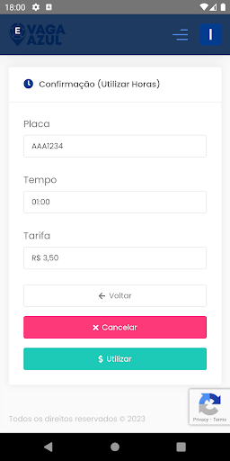 Aplicativo para utilizar os créditos de zona azul nas cidades atendidas pela Vaga Azul.