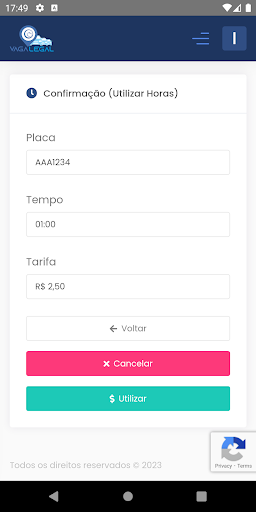 Aplicativo para utilizar os créditos de zona azul nas cidades atendidas pela Vaga Legal.