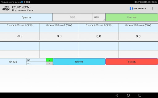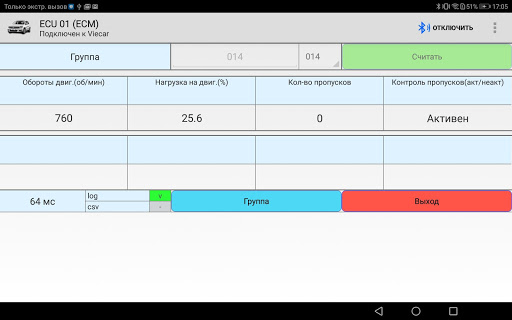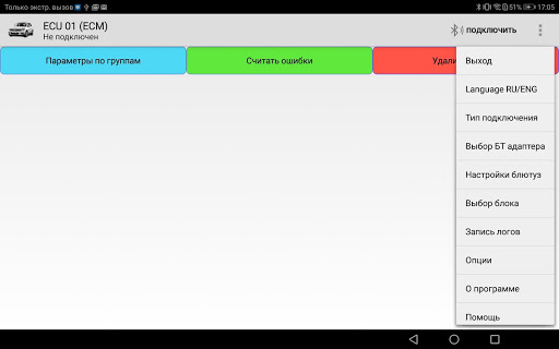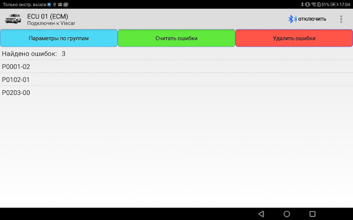 Приложение работает на устройствах Android 4.1+ с адаптерами: ELM327 Bluetooth, USB.