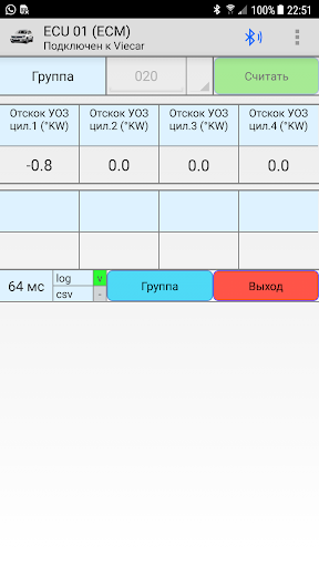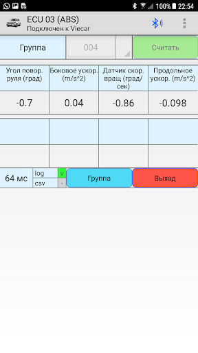 Диагностики нескольких групп параметров для блоков: двигателя, АКПП и ABS.
