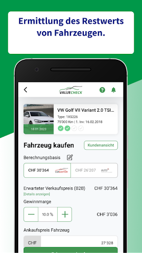Aufnahmen und Bewerten von Eintauschfahrzeugen innert wenigen Minuten und Übermittlung der Daten zum sofortigen Verkauf des Fahrzeugs über CARAUKTION.