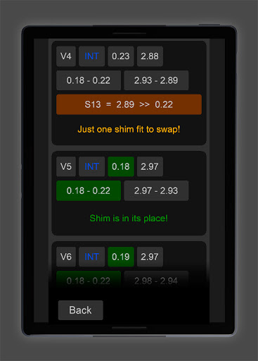 Valve shims calculator