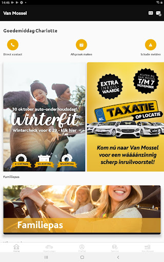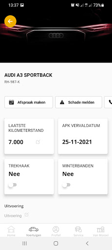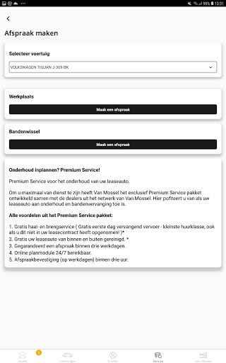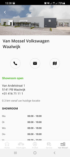 Een overzicht van jouw persoonlijke gegevens en informatie over jouw auto altijd op zak. Zelf regelen is heel gemakkelijk met de Van Mossel App, door bijvoorbeeld online een werkplaatsafspraak in te plannen of direct digitaal schade te melden. Profiteer daarnaast van de extra’s bij Van Mossel Voordeel. En heb je ons nodig voor informatie, service of andere mobiliteitszaken, kom je via de app direct met ons in contact. Kortom: jouw mobiliteit onder één knop!