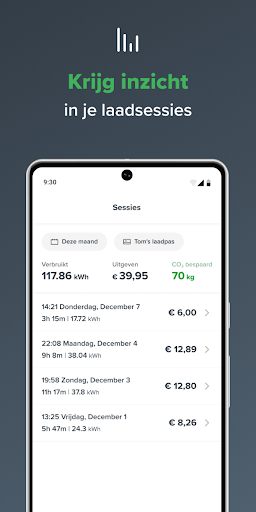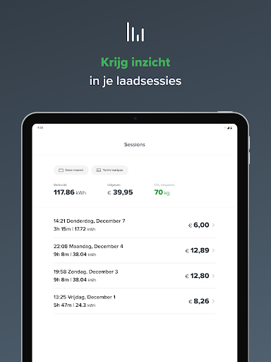 – Handig inzicht in al je laadkosten en -sessies