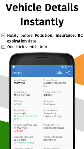 Includes Insurance Validity, Pollution Validity, Vehicle Age etc.