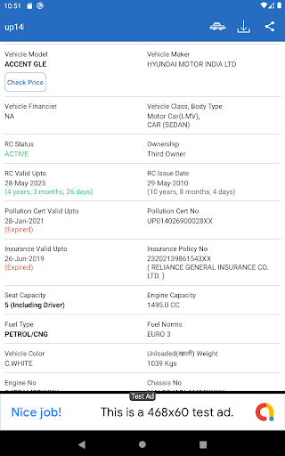 Vehicle Information app give you vehicle details, car details, vehicle info for free. Check details of any (new / second hand )vehicle before buying it.