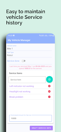 Add/Save vehicle refuel information will help to understand about fuel consumption of the vehicle and gives better idea about the mileage. Draft/Save service information of the vehicle problems this will be helpful when the vehicle goes to the service station, you can store your vehicle problems on the go like (Oil change, Break disk change etc.) as note so it will be easy to remember you get the vehicle to the service station. Service feature also helpful to manage the spending’s on the vehicle. Using My Vehicle Manager application you can use wonderful features like GPS Speedometer & Odometer, Managing all your vehicles Maintenance in free of cost.