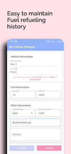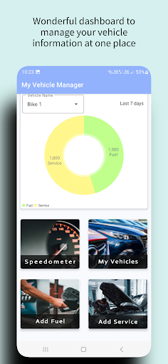 My Vehicle Manager is a one place application to manage all about your vehicle. It lets you effectively manage and track the maintenance and performance about your vehicle it can be Car, Bike, Scooter, Bus Truck etc. Our application having very simple and efficient Dashboard to visualize your vehicle spending’s with Pie Chart’s and quick menu’s to access the features of the application quickly. One of the most interesting feature of the application is