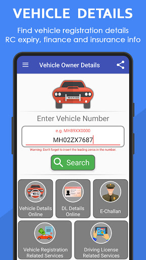 Now, you can easily know about vehicle registration details of any vehicle registered in India using this app.