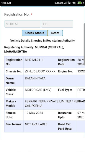 Please note – Not all vehicles’ owner data is yet available in the public database, so if you don’t find any vehicle, don’t downvote please. It will show up only after your RTO office uploads that vehicle’s data.