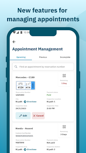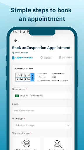 The official application for booking periodic technical inspection appointments for vehicles in approved centers in the Kingdom of Saudi Arabia. This application is managed by the Vehicle Safety Center which is part of Saudi Standards, Metrology and Quality Organization SASO.