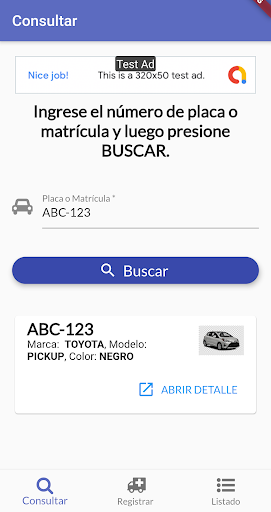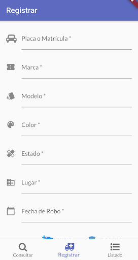 App para el registro y consulta de vehículos robados, consulta rápida por número de placa y subida de fotos del vehiculo reportado como robado.