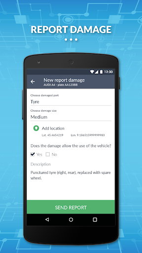 Veicoli Inspection app is an operational tool for taking charge of the vehicle and inspecting visible damage. The operator during the use, which will be sanctioned by a communication through this app, may report the circumstance in which the vehicle has suffered damage by indicating already in a first analysis of the specifications. Once completed the working day, the driver can report the end and indicate the place of the deposit. The automatic system will take the time and credentials of the subject.