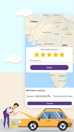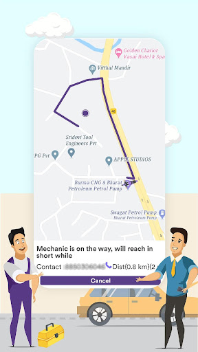 ️After communicating, mechanic will reach at your place by tracking Google map with necessary equipment. You can watch the live tracking of his coming, distance and time on your app.