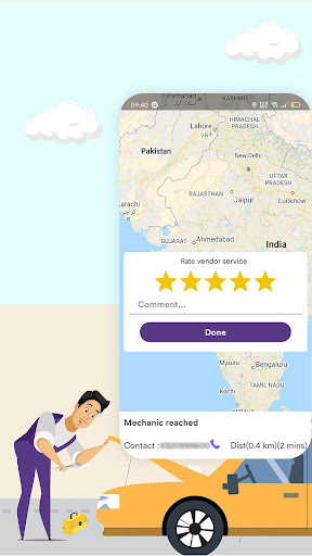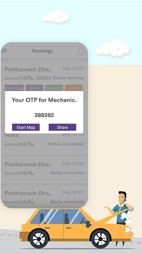 Each mechanic has his own login credentials. Upon activating the GPS over the mechanic app, user requests can be accepted or rejected. The user can keep track of the ongoing service request. He can manage his profile information.