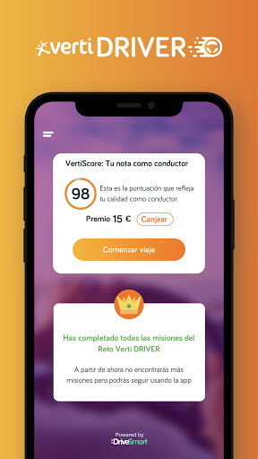 El reto consiste en demostrar que eres un buen conductor. Utiliza la app para grabar tus viajes e ir completando las misiones que te iremos proponiendo. Verti DRIVER te ayudará a mejorar tu conducción y a convertirte en un conductor más seguro, eficiente y responsable. Descarga la app, demuestra tu habilidad al volante y consigue tu premio.
