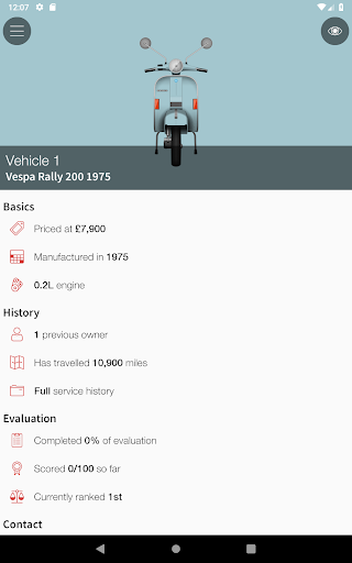 • Store information about viewed Vespas, including seller notes, and have the ability to contact the seller direct from the app
