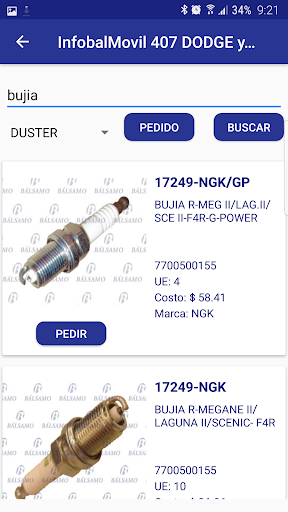 Se puede hacer búsquedas por número de artículo, descripción u original, Administrar pedidos, Agregar, Borrar y Cerrar, Informar pagos y ver estados de cuentas. Descargar comprobantes y recibos.