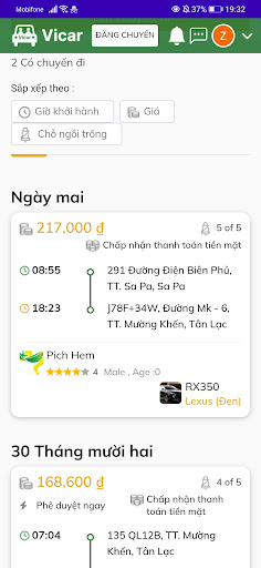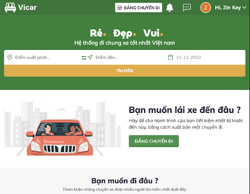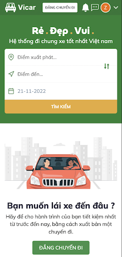 Với Vicar bạn có thể dễ dàng tìm được một chuyến xe ghép đi chung với giá vô cùng rẻ (Thường chỉ bằng 20% so với cước xe taxi).
