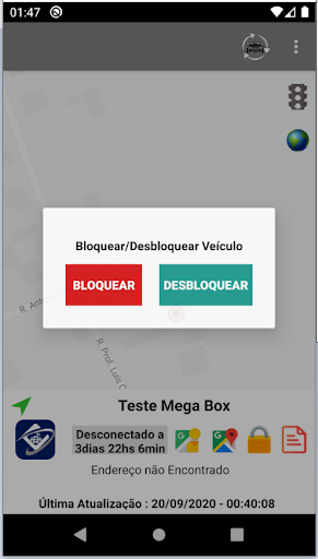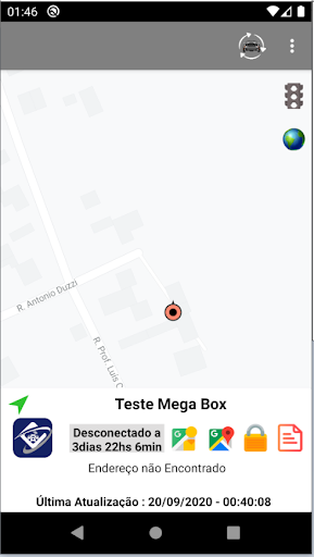 Veja a quanto tempo seu veículo está parado, qual a velocidade atual, e qual o endereço por escrito