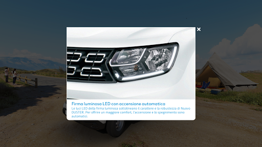 Con l’App VIRTUAL NUOVO DUSTER 3D, potrai vivere Nuovo Dacia Duster in realtà virtuale. Indossa i Visori VR e vivi un’esperienza immersiva e coinvolgente alla scoperta del design ancora più SUV, delle nuove caratteristiche tecnologiche e del comfort da lasciarti senza fiato di Nuovo Duster.