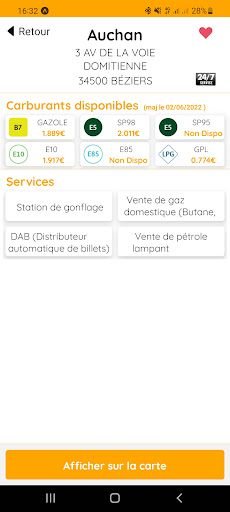 Activez votre service de géolocalisation et trouvez les stations essence autour de vous pour comparez les tarifs. Vous pourrez filtrer l’affichage des stations en fonction de la date de mise à jour des données et du carburant souhaité.