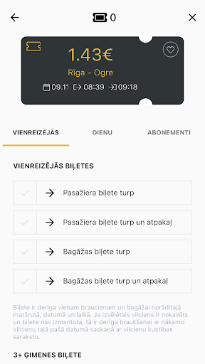 Aktuālā informācija par vilcienu satiksmi Latvijā. Lietotnē iespējams apskatīt vilcienu kustības sarakstu, apskatīt un izvēlēties vilcienu maršrutus, izveidot personīgo kontu, iegādāties e-biļetes, apskatīt vilcienu kustību reāllaikā, uzzināt operatīvās izmaiņas vilcienu kustībā, pieteikties izmaiņu un jaunumu saņemšanai, iepazīties ar noteikumiem pasažieriem, iegūt informāciju par uzņēmuma darbību un aktualitātēm. Mobilā lietotne automātiski atjaunina vilcienu kustības sarakstu un pārējo informāciju, ja ir pieejams interneta savienojums.