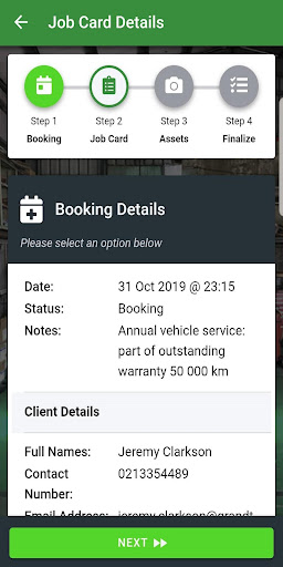 The VMG Workshop Mobile app enables your team to open and edit Clients, Vehicles, Bookings and Job Cards. It also enables your workshop team to add photos of Vehicles to Job Cards. These date and time stamped images can then be sent with Job Card data to your customers via email. Taking photos of Vehicles as they arrive protects you and your customers from misidentifying damage to Vehicles that you or your customers may feel was caused by members of your workshop team.