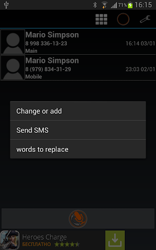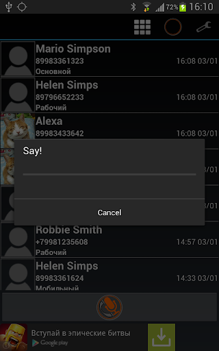 The application is able to sound incoming calls and automatically to turn on the speakerphone. Activation of the program by means of Bluetooth and wire headset is supported. In systems with the Android 4.1. above operation offline is supported.