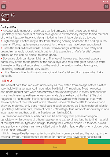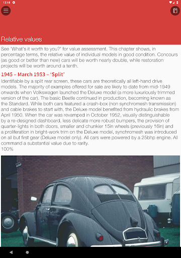 A unique App dedicated to VW Beetle’s built from 1945-2003, including Cabriolet, Standard and Deluxe, 1300 Beetle, 1500 Beetle, 1302S, 1303, and Mexican-built Beetles (from 1978). Meticulously researched with many model-specific photographs reproduced to illustrate genuinely informative advice.