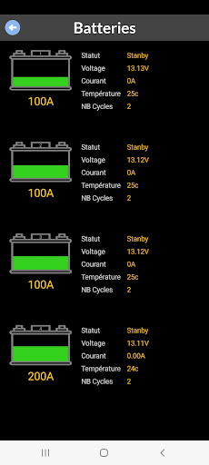 This application allows Volthium battery users to read the status of their battery. Current status, percentage of charge (SOC), average amperage (incoming +/- outgoing), number of cycles since purchase, internal temperature, voltage, and alerts. The protocol used is BLE 4.0, the communication distance is on average 6 meters.