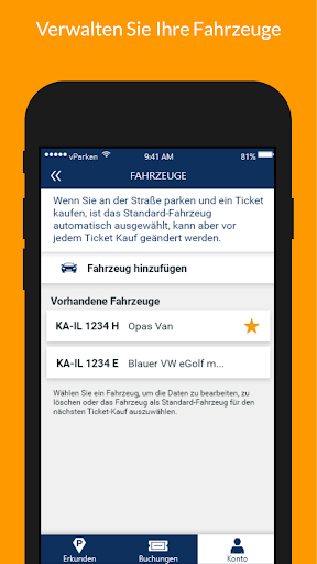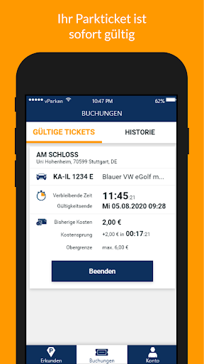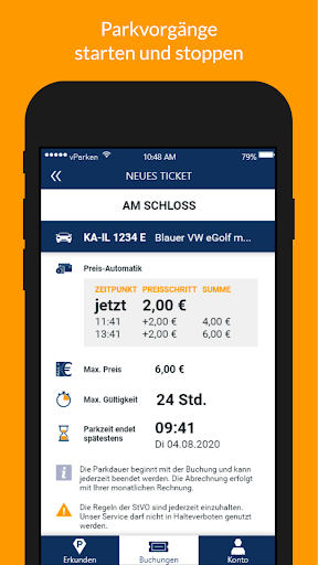 – Buchen Sie ein Ticket mit der vParken App durch Eingabe Ihres KFZ-Kennzeichens