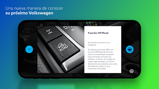 Con la aplicación de realidad aumentada de Volkswagen podrás ver el auto en detalle, explorarlo e incluso ver cómo se vería en tu garaje. Proyectá el vehículo en una superficie plana.