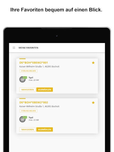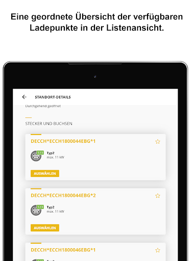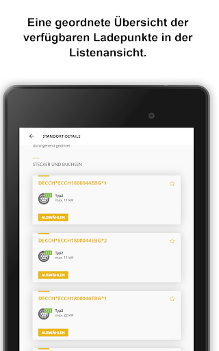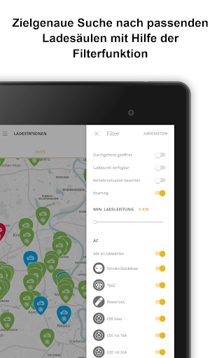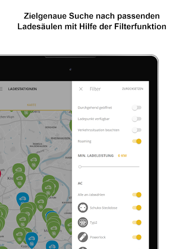 Mit einmaliger Anmeldung in der App stehen Ihnen all diese Funktionen zur Verfügung. Die praktische Filterfunktion erleichtert Ihnen zudem jede Suchanfrage. Speichern Sie einfach Ihre persönlichen Lieblings-Ladestationen in Ihrer Favoritenliste ab. So bleiben Sie in Sachen Verfügbarkeit immer auf dem Laufenden.