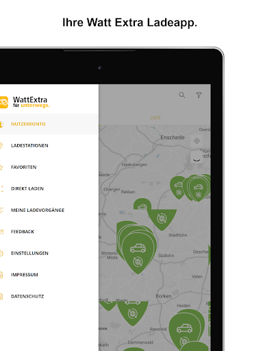 Auf einer übersichtlichen Karte können Sie die Standorte aller verfügbaren Ladepunkte einsehen und finden so ganz bequem und schnell eine Ladestation in Ihrer Nähe. Sie erfahren auch, ob die gewünschte Ladestation gerade verfügbar ist und können sich auf kürzestem Weg zu dieser navigieren lassen. Die WattExtra-LadeApp zeigt Ihnen außerdem, welche Preise aktuell an der Ladestation gelten und welcher Steckertyp passt.