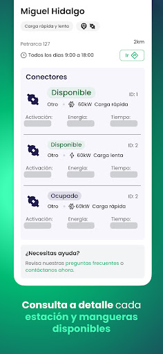 – Encuentra estaciones cercanas: Localiza estaciones de carga rápida y lenta en tiempo real, con información detallada de disponibilidad.