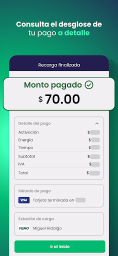 – Gestión fácil de recargas: Escanea un QR para iniciar tu carga y consulta el progreso al instante.