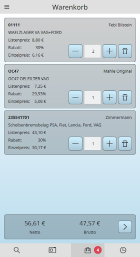 Kfz-Ersatzteile bequem per App direkt beim Händler suchen, auf Verfügbarkeit prüfen und jederzeit bestellen. Es können auch Fotos und Bilder zum Händler übertragen werden, um die passenden Ersatzteile für ein Fahrzeug zu finden.