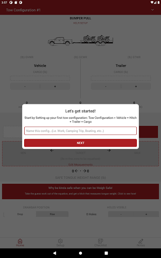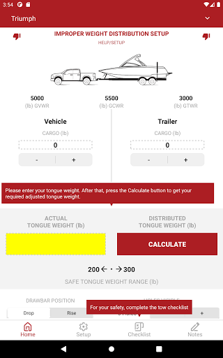 Calculates the distributed tongue weight required to equalize a vehicle and trailer.