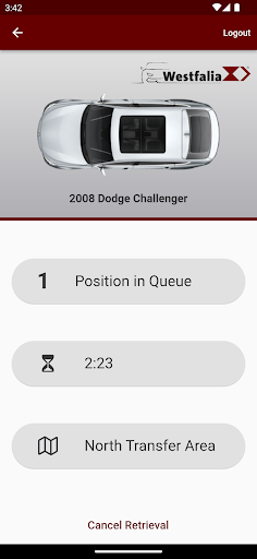 • By-the-second tracking: Track your vehicle throughout the retrieval process, with a live countdown to when it is delivered to the transfer area.
