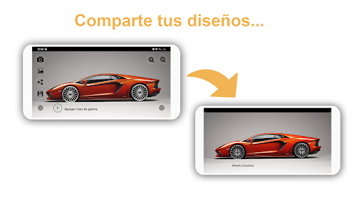 With the wheel simulator you can add different wheel designs to your car and be able to visualize how your car looks, share your best version of your car. Have fun changing wheels, add them from the gallery without restrictions, as a gift we have included 50 designs of preloaded wheels