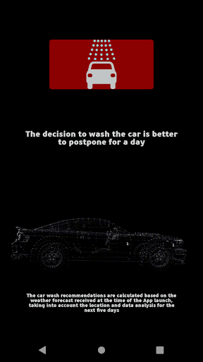 The app will tell you whether to wash your car today, depending on the weather forecast, which will help you save money for washing in adverse weather conditions in the coming days.