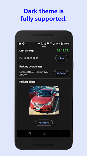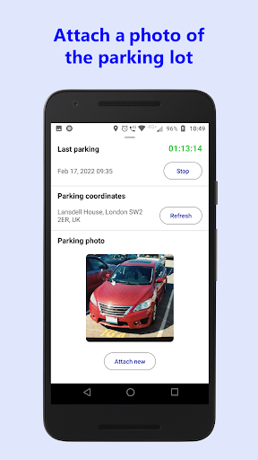 • App supports photo attachments. Sometimes, especially on underground parking the GPS is not quite accurate. And in these cases you may attach photo of your parking lot. Then you may easily find that parking lot among other cars.