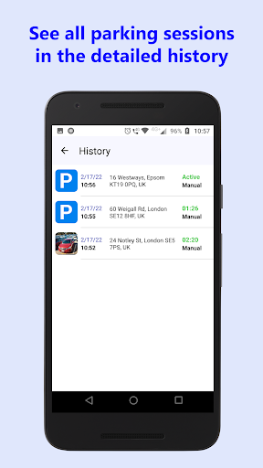 • All your parking sessions are saved in the app. So it is always possible to view history of your parking sessions.