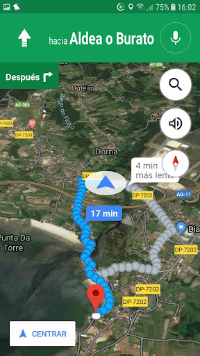 * VOLVER AL COCHE: Pressing this button shows all the addresses that are stored in the Application and pressing the chosen Google Maps shows the route to go