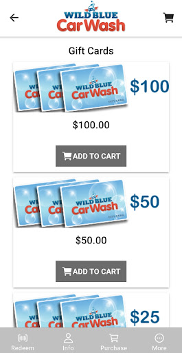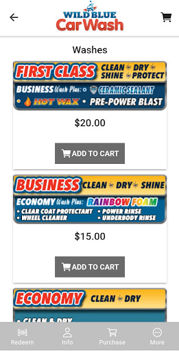 Wild Blue is the new, easy-to-use app that provides you with access to the area’s finest car washes. Use our mobile app to create your own secure account to purchase individual washes, gift cards and to join subscription based wash clubs. You can add a credit card to your mobile app and make future purchases with just a card on file without having to open your wallet again. At the car wash, you can redeem your purchased wash remotely without rolling down your window to touch the screen. Simply enter your wash code or scan the barcode displayed in the app. You may also view a visual history of your purchases including date, time, service purchased. Wild Blue combines convenience and technology to keep your vehicle sparkling!